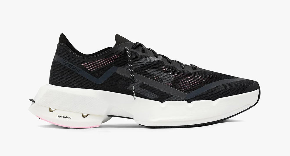 Confeccionada con una parte superior de piel negra arrugada, esta zapatilla se distingue por su construcción envolvente en tono sobre tono, que crea una silueta elegante y de perfil bajo. Los detalles de costura en zigzag y el sutil logotipo Represent grabado en relieve en la lengüeta le aportan un toque de distinción, mientras que el cuello acolchado y el fuelle elástico interno garantizan comodidad y un ajuste seguro.